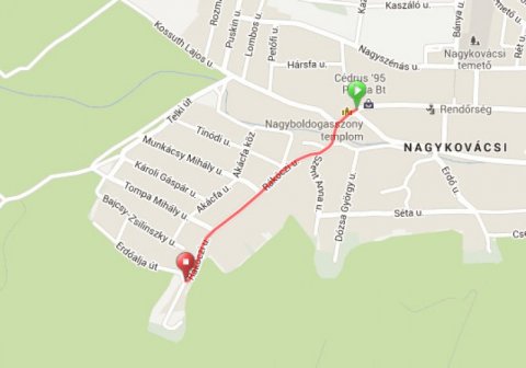 A főteret elhagyva, az úton lefelé indulva haladj át az Ördögárok patak feletti hídon, majd a Rákóczi utcán folyamatosan felfelé tartva éred el a régi murvabányát.