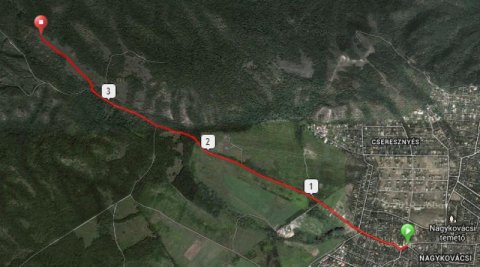 Túránkat Nagykovácsiból, a római katolikus templom melletti főtérről (Tisza I. tér) a sárga jelzésen, a világháborús emlékmű mellett nyugat felé, a Kossuth Lajos utcán kezdjük. A település szélén az Y alakú elágazásban 1899-ben állított kőkeresztet láthatunk. Az eddig a sárgával együtt haladó zöld jelzés itt balra leágazik, mi egyenesen folytatjuk tovább utunkat.